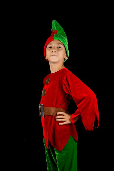 Costumul este realizat din catifea verde si rosie si contine pantalon,bluza si palarie.