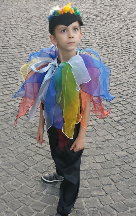 Inchiriere costum serbare pasare multicolor pentru baieti.