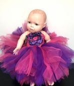 O rochita deosebita in nuante vesele de mov si roz ciclam pentru mica printesa jucausa care participa la un eveniment, botez, nunta, zile onomastice.
