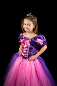 Rapunzel o printesa rebela cu o superba rochita in nuante de mov si roz.
